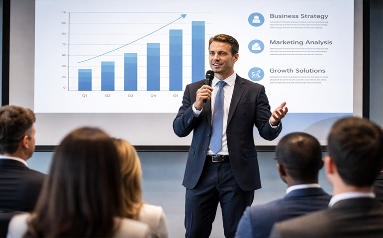 - Design and deliver professional presentations with organized structure and strong visual support.